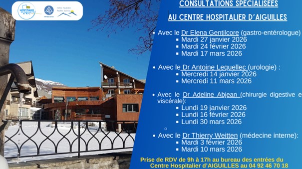 • Prochaines dates des consultations spécialisées au Centre Hospitalier Aiguilles-Queyras